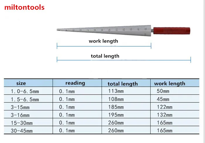 Конический щуп изготовлен из металлического материала, маленькая головка, большая головка, конус по шкале используется для измерения тонких стенных деталей, пластиковая труба, внутренний диаметр, внутреннее отверстие, имеет преимущества простой структуры, разумное, удобное и быстрое измерение.