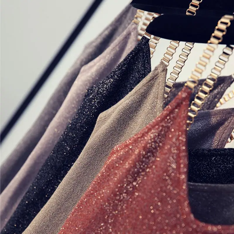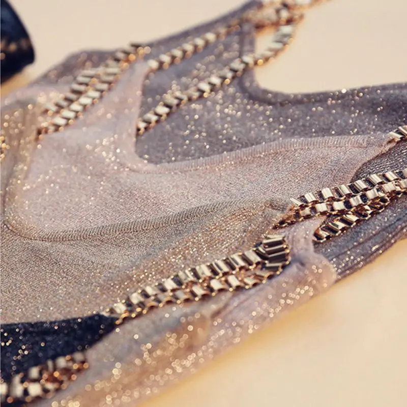 Женский топ без рукавов, пикантная трикотажная кофточка с v-образным вырезом, тонкая блестящая майка с металлическим ремешком для клубов и девушек на лето