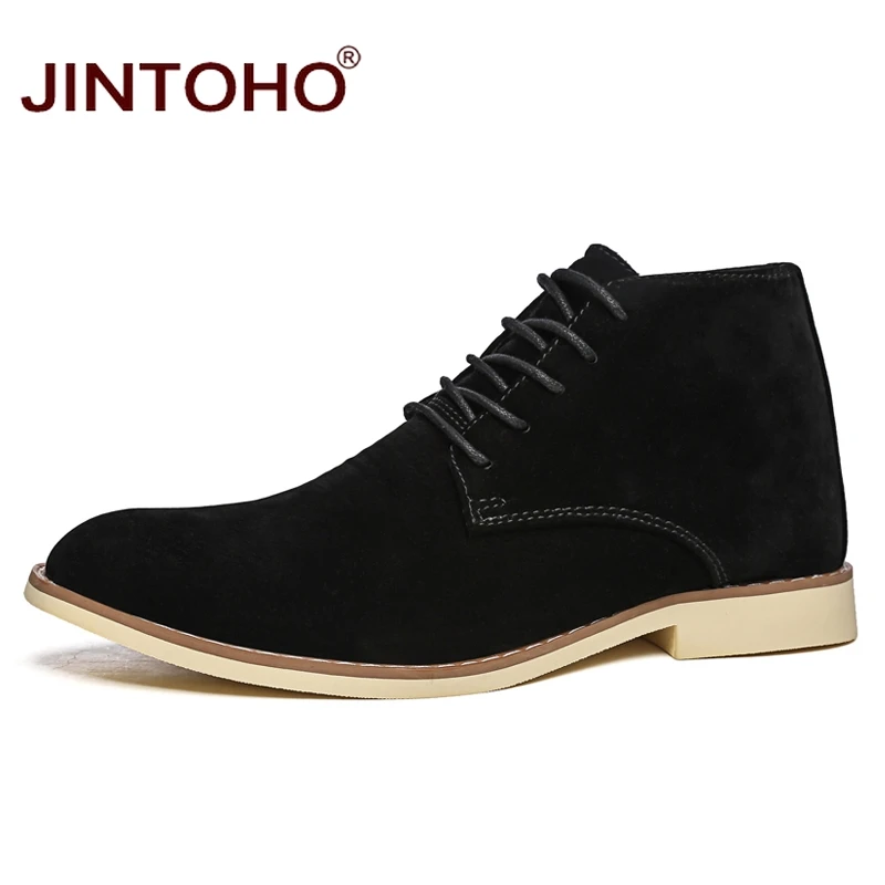JINTOHO 2018 Новая мужская зимняя обувь модные мужские замшевые ботинки из свиной кожи с острым носком повседневная мужская обувь зимние мужские ботинки дешевые мужские ботинки