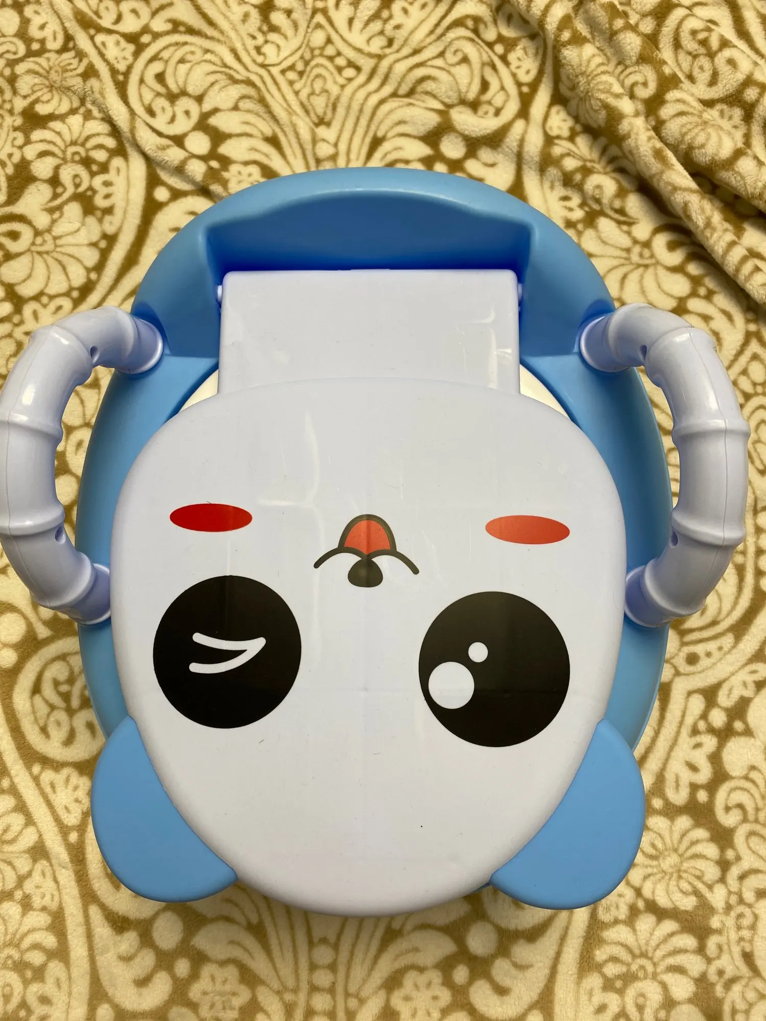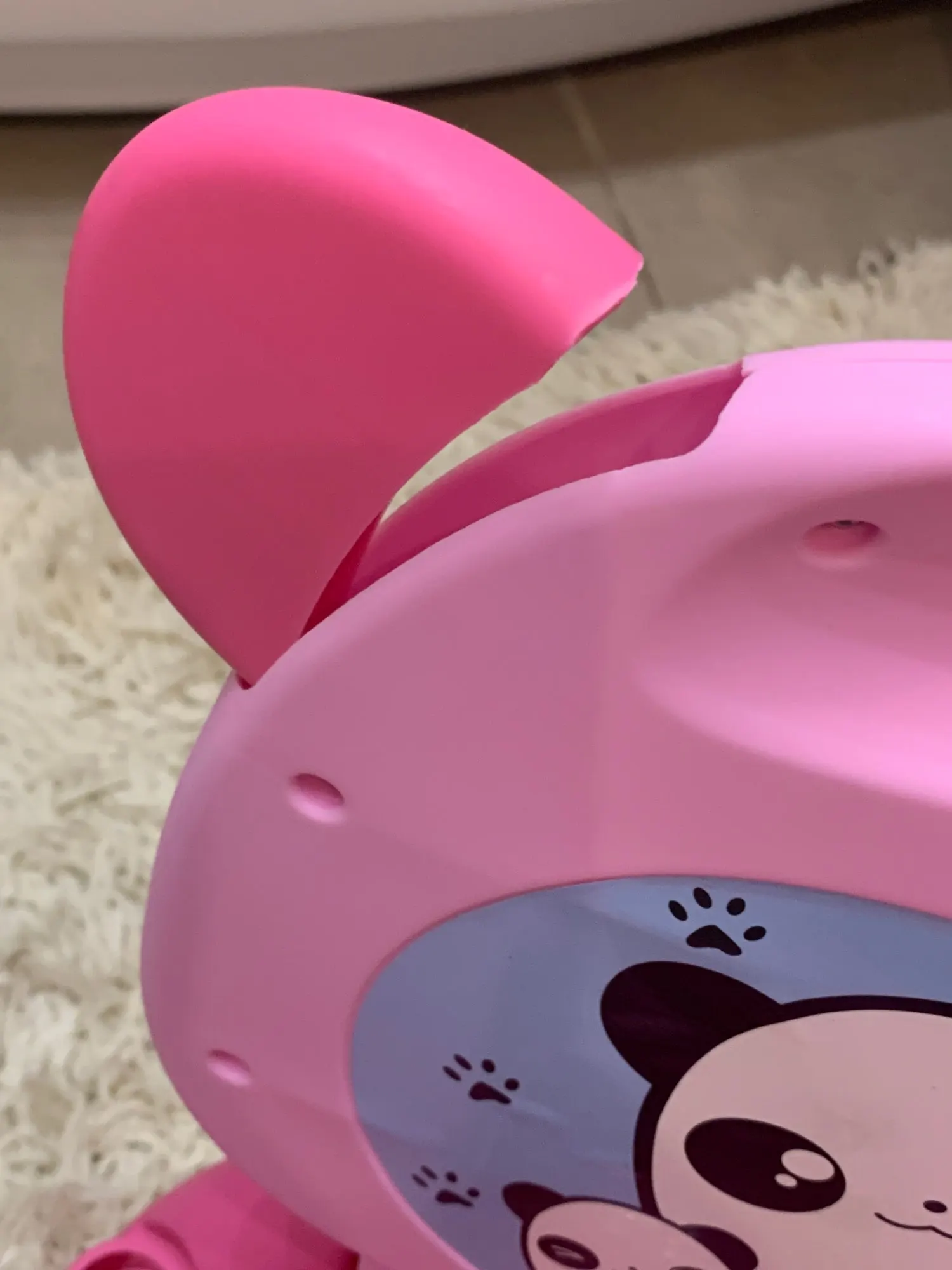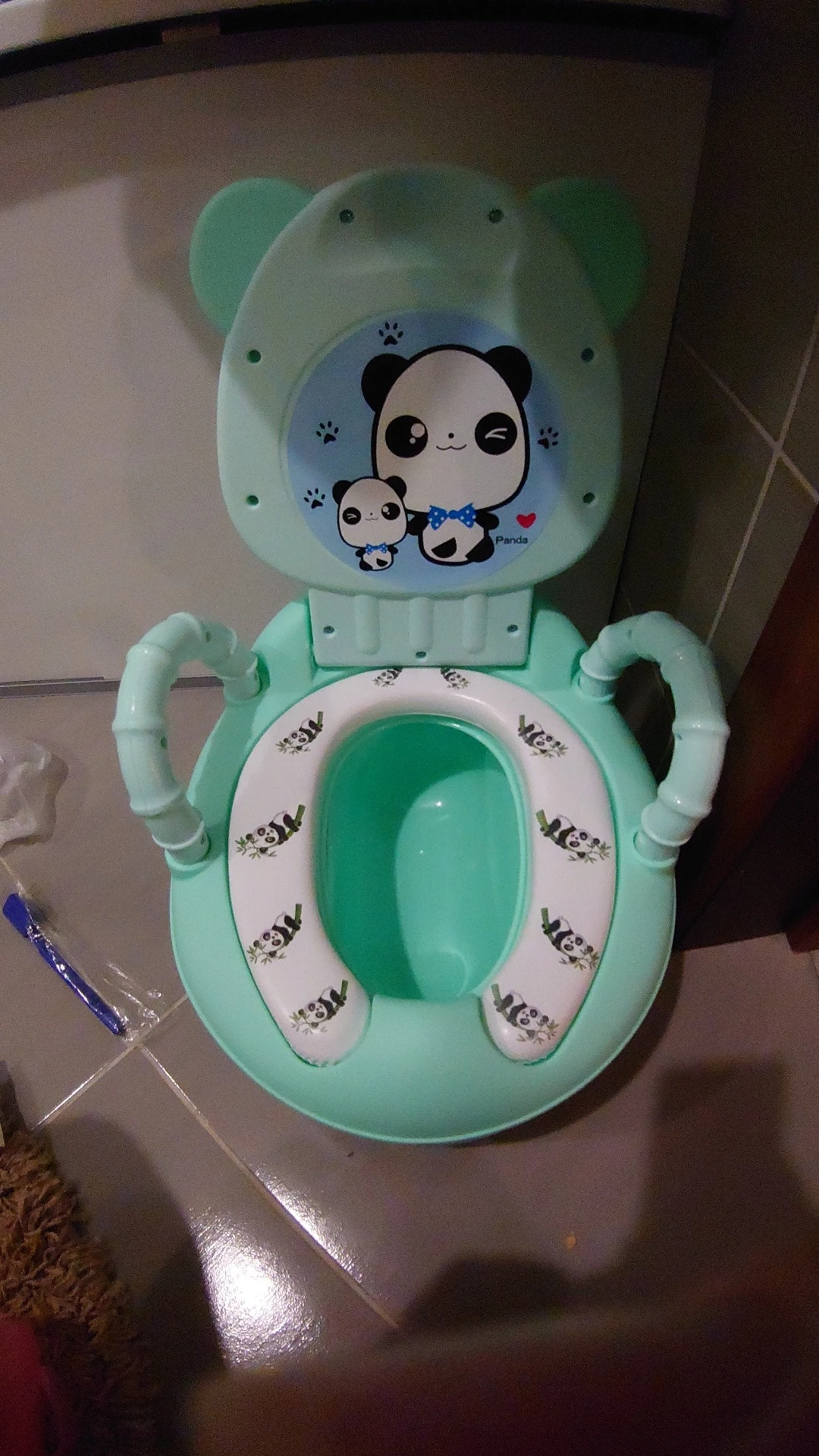 Забирала посылку на почте, хотя думала что привезёт курьер. Отсек для "подарочков" ребёнка болтается, приходится по нему хорошо ударить чтобы не вываливался,по фото видно что щели расположены не симметрично. Даже наклейку на крышке не смогли ровно приклеить. Боюсь что горшок прослужит недолго, пластмасса самая дешёвая. Хотела сэкономить, но по ходу придётся ещё горшок брать,но уже не у этого продавца