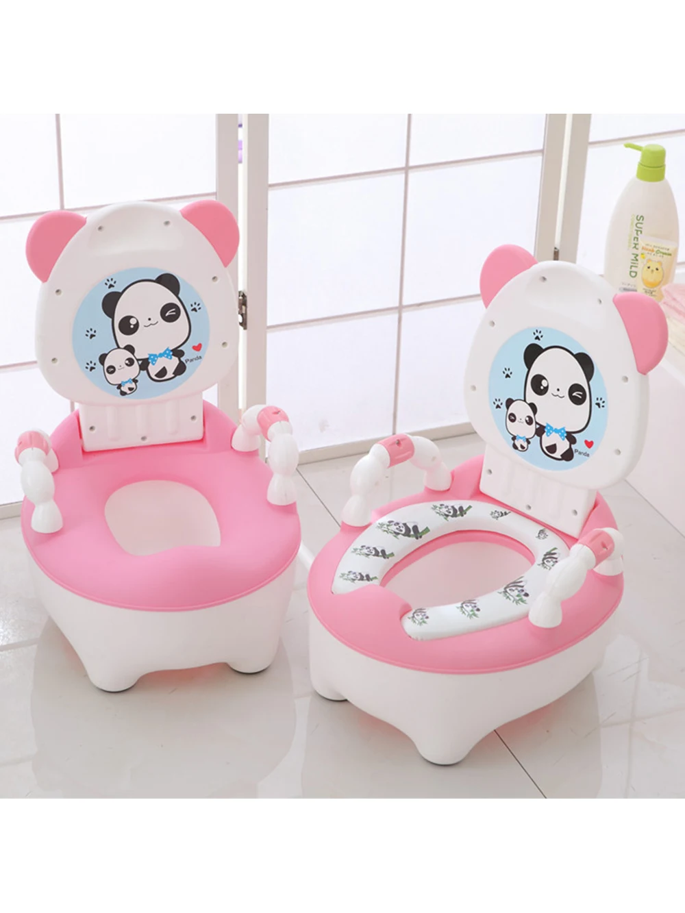 Отличный детский унитаз. Ребёнку понравился. Удобный, мягкий. Единственный минус :спинка падает периодически.