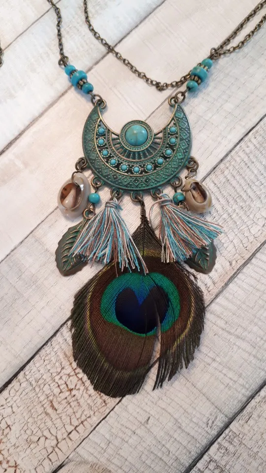 Новый стиль кисточкой перо павлина чешское длинное ожерелье оболочки свитер кожаная цепочка ювелирные изделия преувеличены дизайн прямая поставка