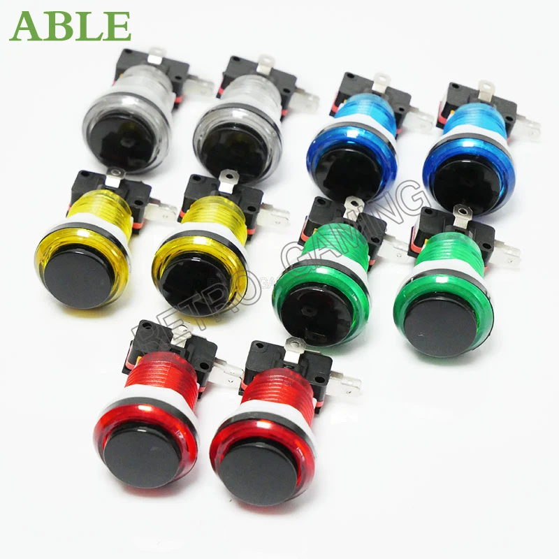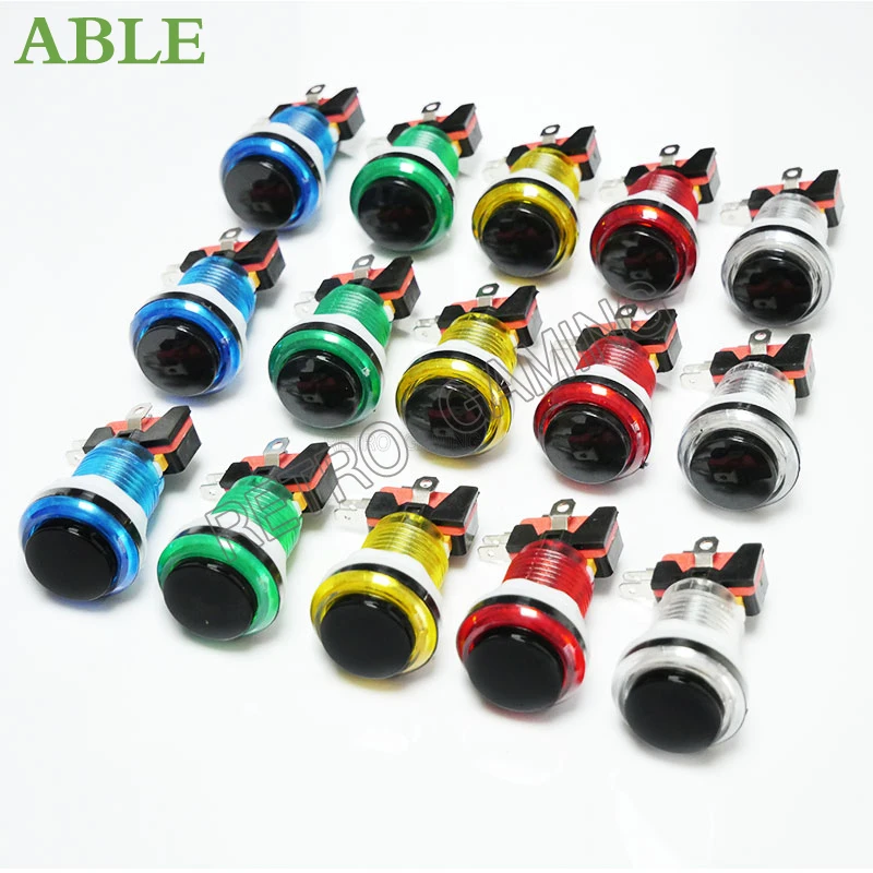 12 шт. 6 цветов 28mm монтажное отверстие 5V12V светодиодный кнопочный переключатель с 3 pin Микропереключатель с черным покрытием набор сделай сам для Аркады Запчасти Jamma шкаф