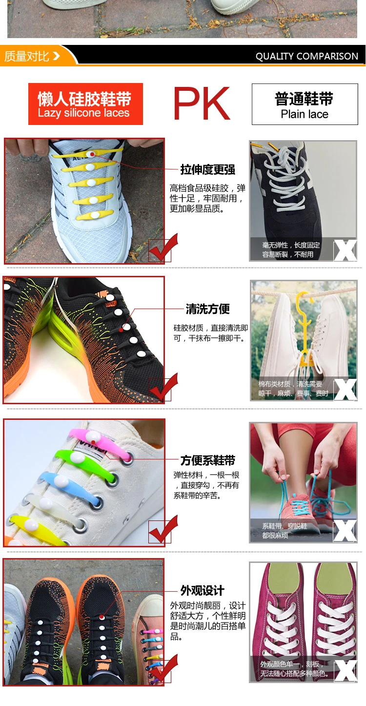 12 шт.компл. VING новые унисекс спортивные шнурки для бега без завязывания эластичные силиконовые шнурки все кроссовки подходят для ремня обуви кружева