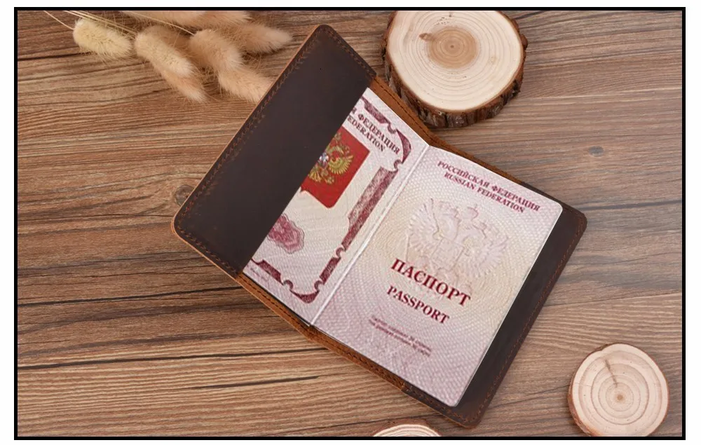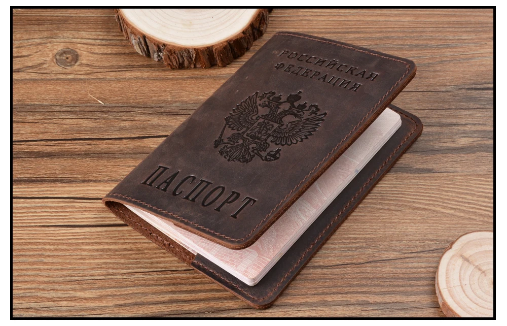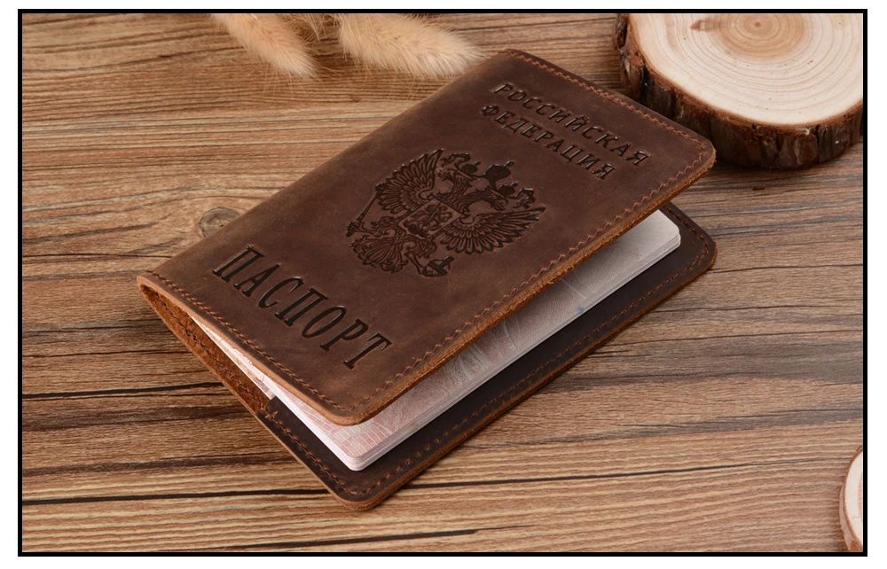Обложка для паспорта из натуральной кожи для Российской Федерации, визитница из кожи Крейзи Хорс, Дорожный Чехол для паспорта