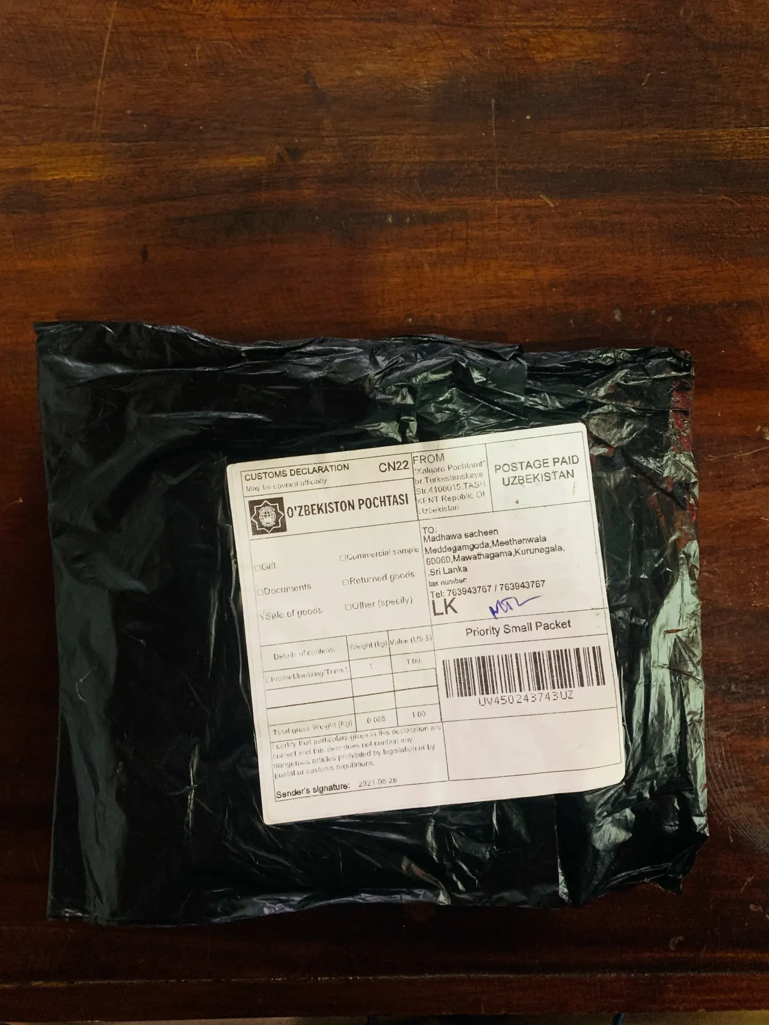Страна: BA Доставка: Cainiao Super Economy Global 09.09.2021