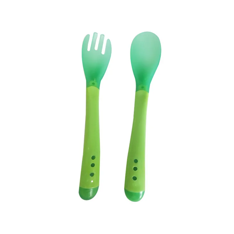 Детская силиконовая ложка с датчиком температуры, детские столовые приборы для кормления, ложки и вилки
