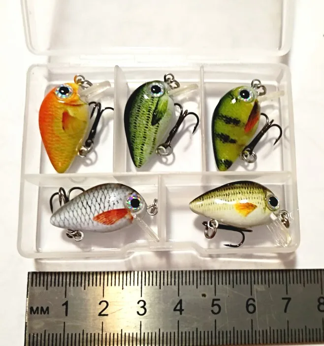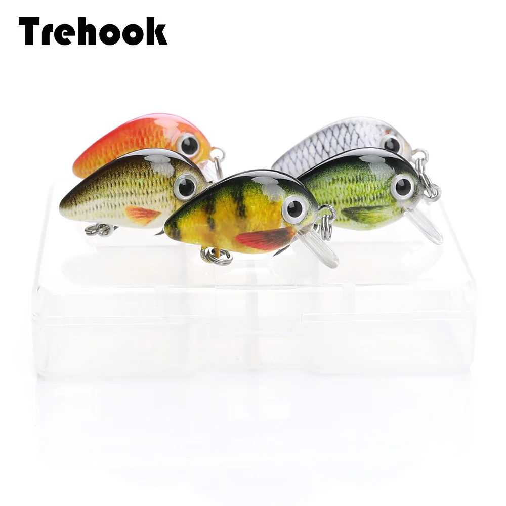TREHOOK 5 шт. 1,5 г 3 см мини Воблерыкренкбейт рыболовная приманка искусственная наживка жесткий плавающий Воблер для рыбы бас Рыболовная Снасть