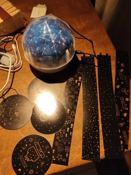 Быстрая доставка и коробка обернута вокруг тесьмой, чтобы предотвратить раздавливание коробки. Он хорошо упакован. Он поставляется с 5 пленками и проектной лампой. У меня не было рождественского фильма, а вместо него они подложили мне пленку земли, которая в порядке. Нет проблем. До тех пор, пока не отсутствует товар, который хорош. Не могу дождаться, чтобы попробовать.