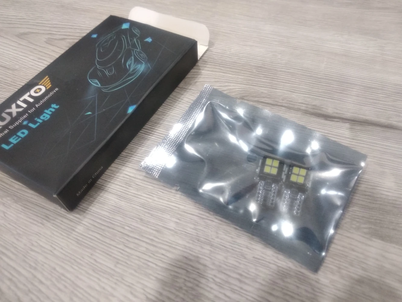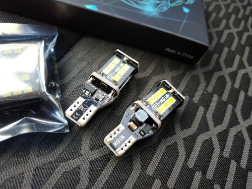 Продавец долго (6 дней) отправлял товар. Дошёл до Сибири за 2 недели. Коробка чуть помята но лампы целые. Светят очень ярко, они биполярные. Греются, но если использовать для ламп заднего хода, то прослужат долго. На фото разница с лампой накаливания 16 Ватт.