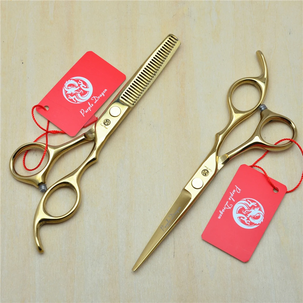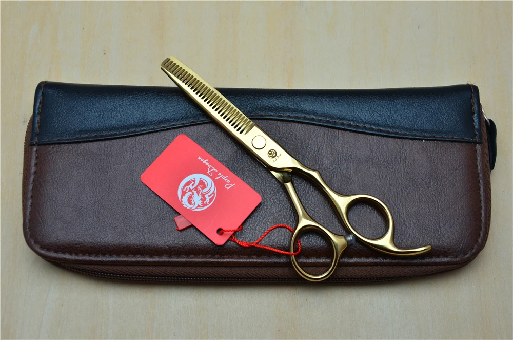 Профессиональные парикмахерские ножницы, филировочные ножницы золотистого цвета с фиолетовым драконом 440с, 16 см, 5,5 дюйма