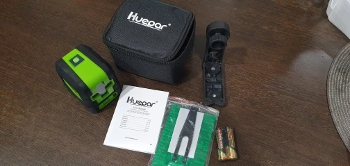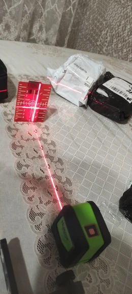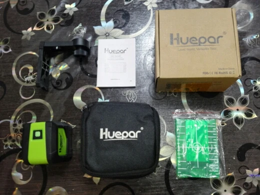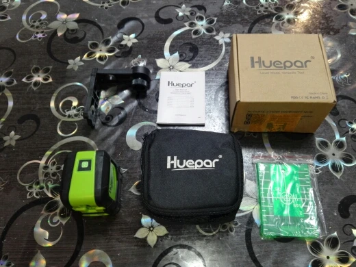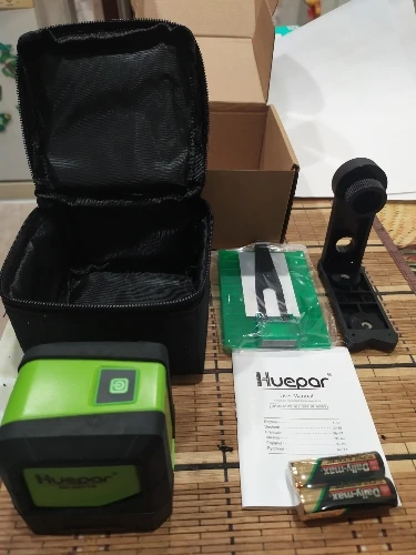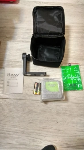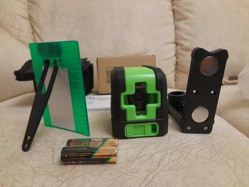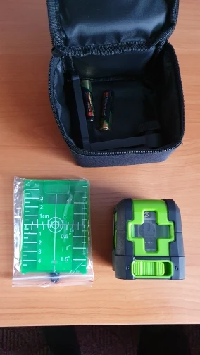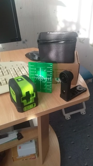 Доставили на шестой день. Светит ярко и далеко. Режима - 2: крест в режиме самовыравнивания и крест зафиксированный (можно наклонить под нужным углом). В комплекте крепление на стену с магнитами, чехол и батарейки. Надо будет докупить триногу (отверстие с резьбой есть). Продавцу +.