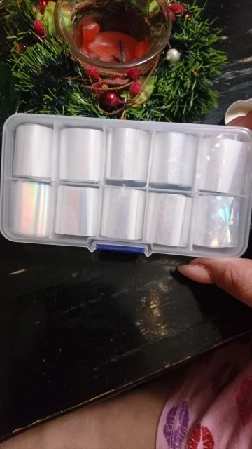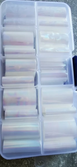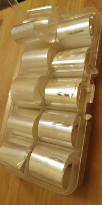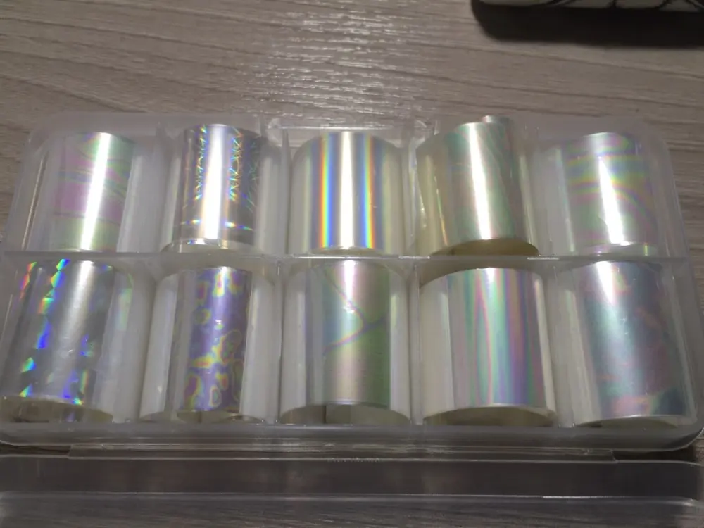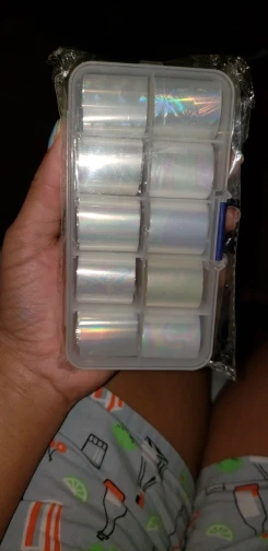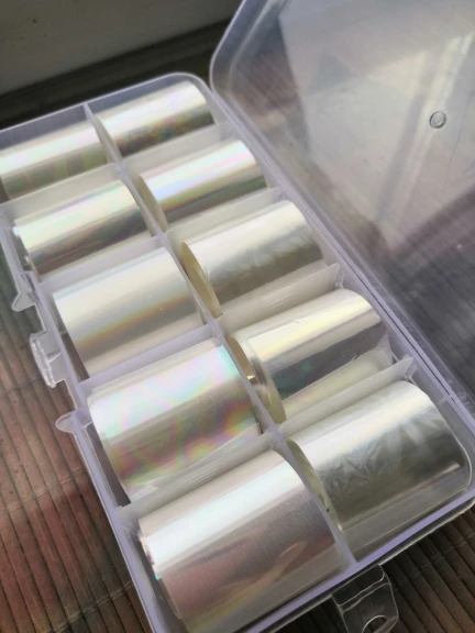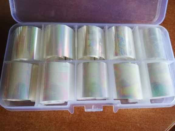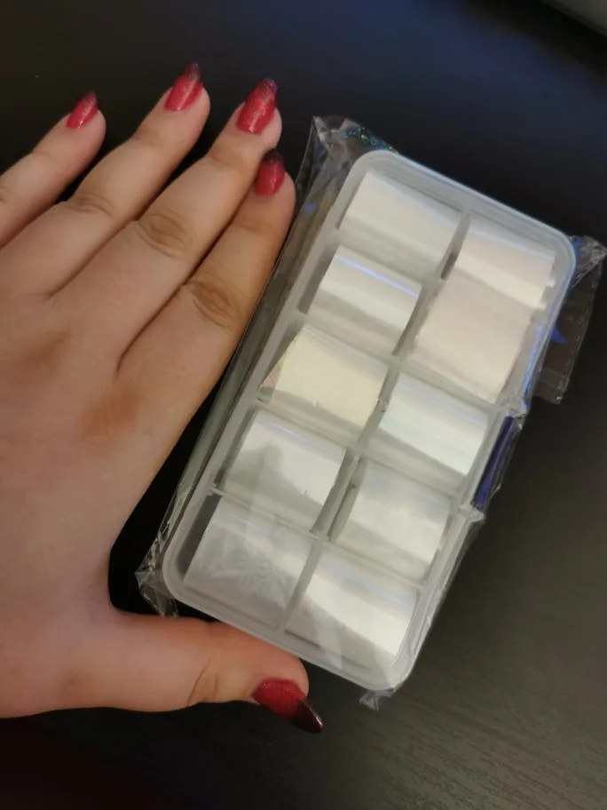Этот продукт был очень точным в описании! Я создали красивые эффекты для ногтей с каждым из десяти белых рулонов фольги. Эти высококачественные фольги были доставлены быстро, и в упаковке содержалась хорошая акриловая коробка, заполненная фольгой для хранения. Я обязательно буду заказывать больше товаров с этим продавцом, который я настоятельно рекомендую! (Для хороших результатов с полным покрытием фольги для ногтей я рекомендую использовать «фольга гель Клей»)⭐⭐⭐⭐⭐