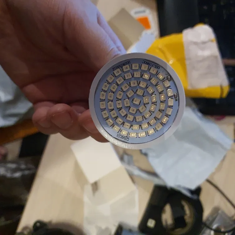 Лампа пришла целая и рабочая, на 60 диодов, почти не греется, но и свет слабенький, поссотрим, понравится ли растениям...