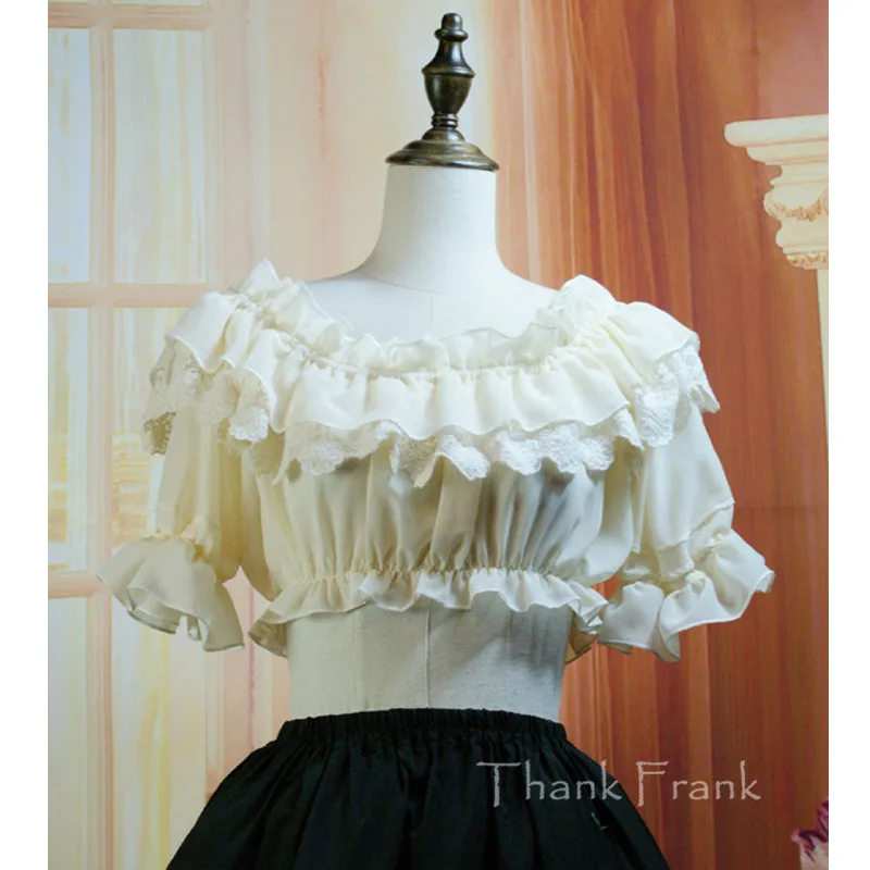 Кружевной летний укороченный топ, женская шифоновая блузка с коротким рукавом в стиле Лолиты, сексуальная Нижняя рубашка в японском ретро-стиле с вырезом-лодочкой