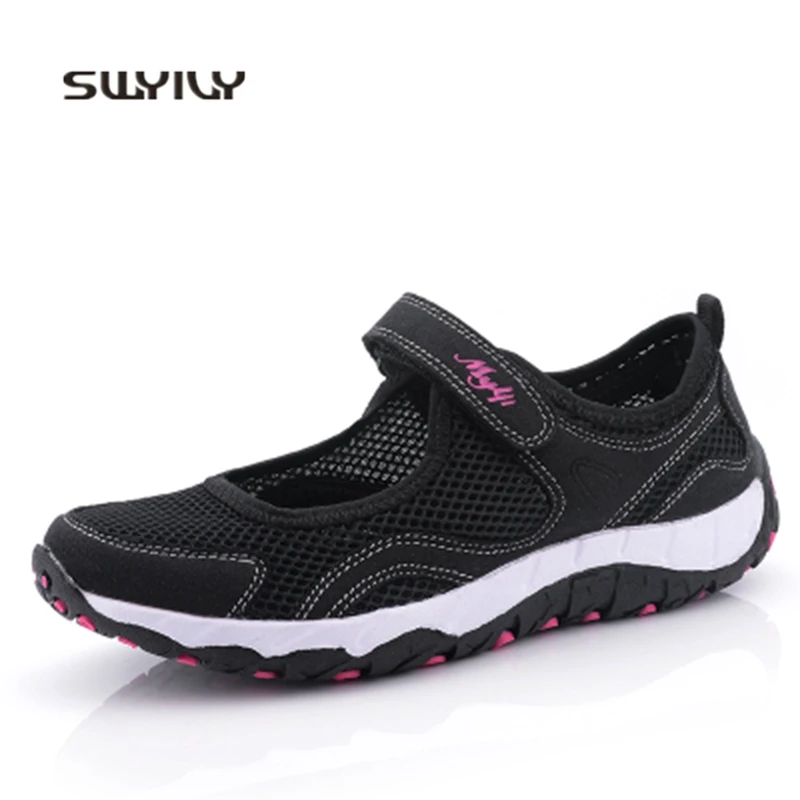 Женские кроссовки SWYIVY прогулочная обувь на липучке сетчатые дышащие 2018 светильник кие женские туфли на плоской подошве женские прогулочные эспадрильи