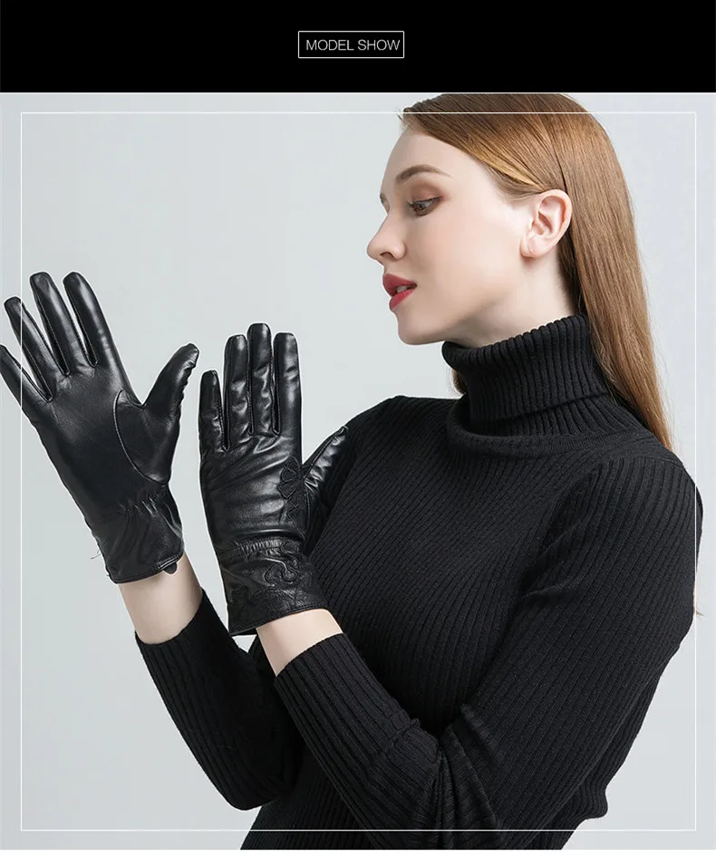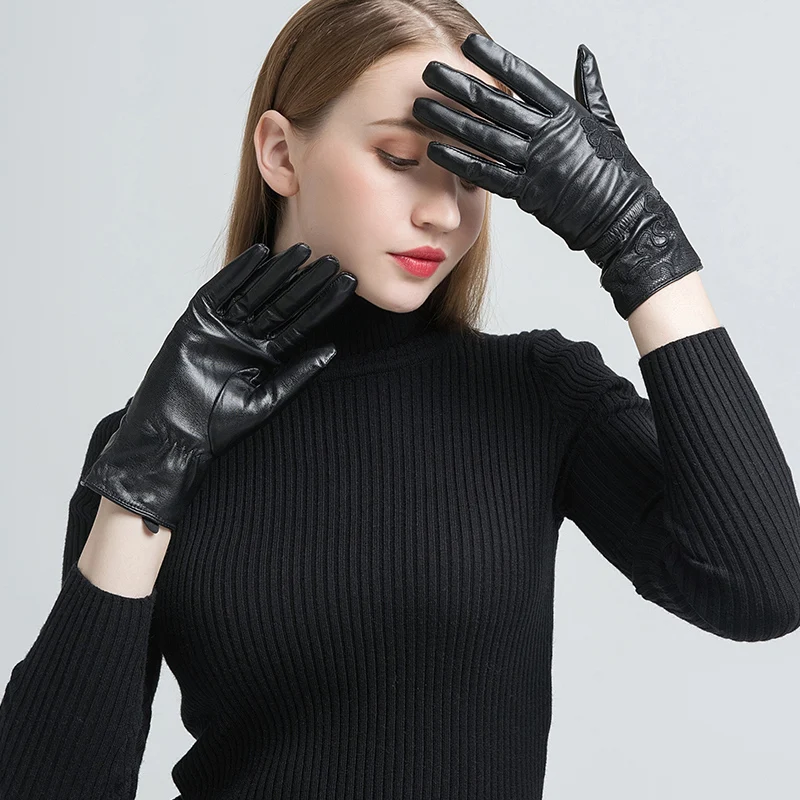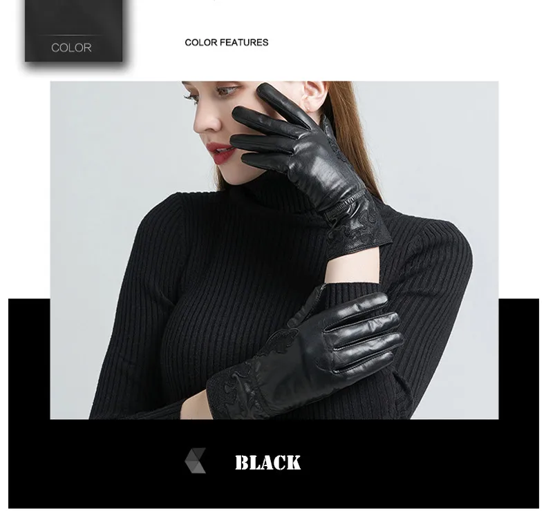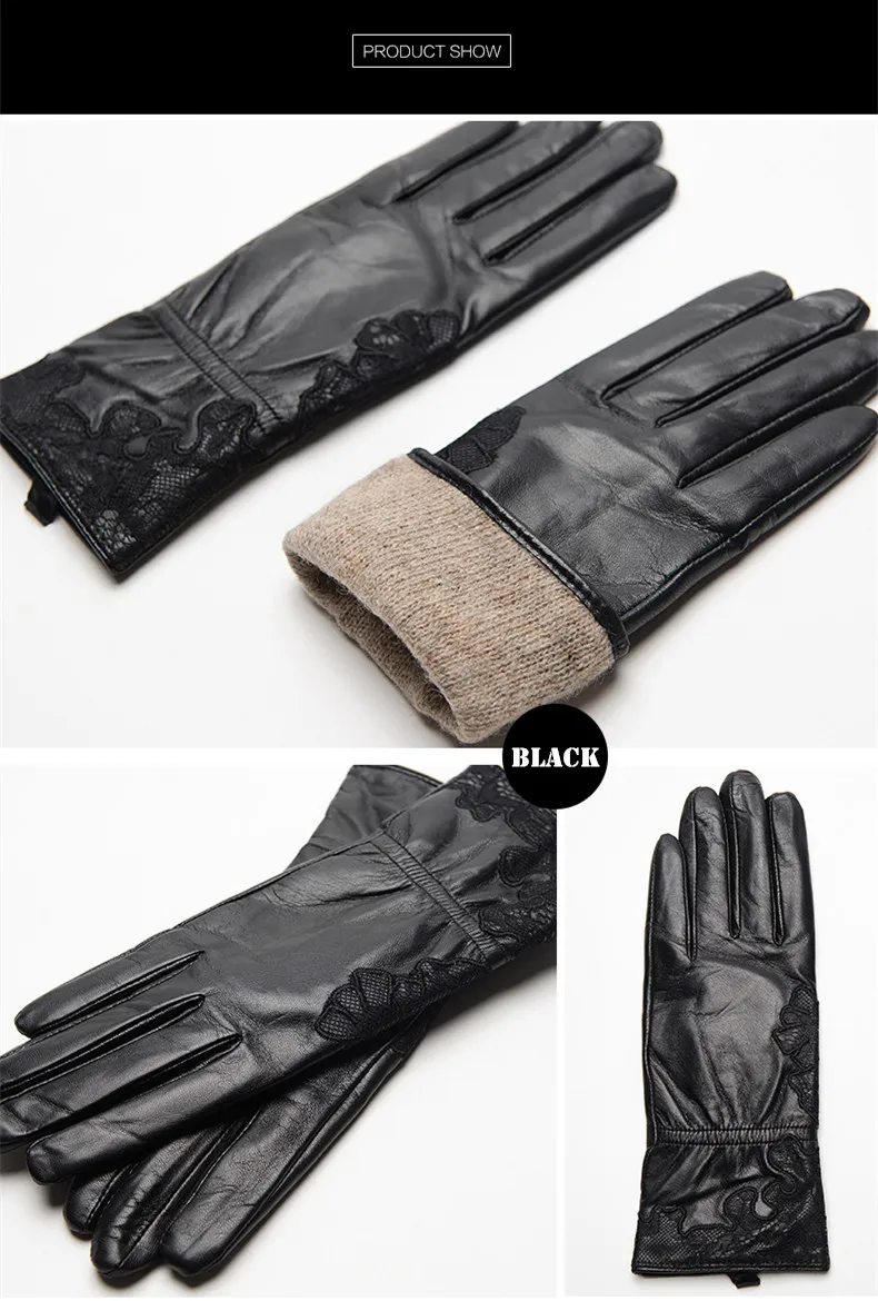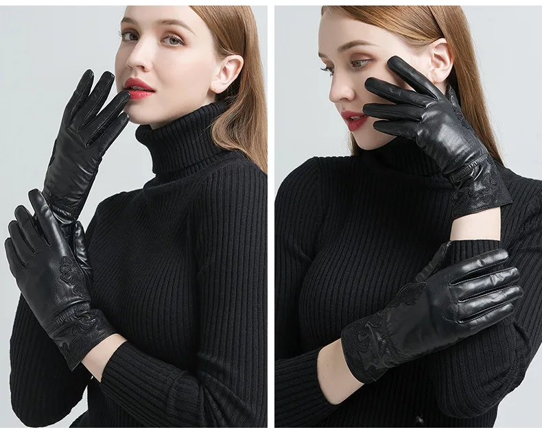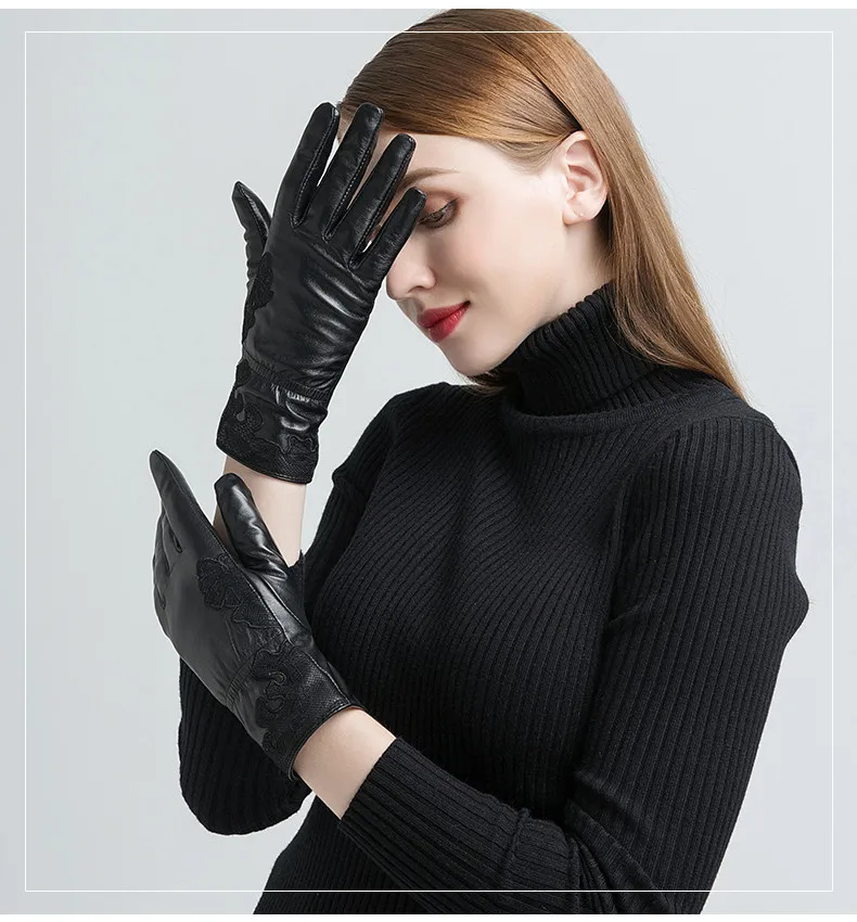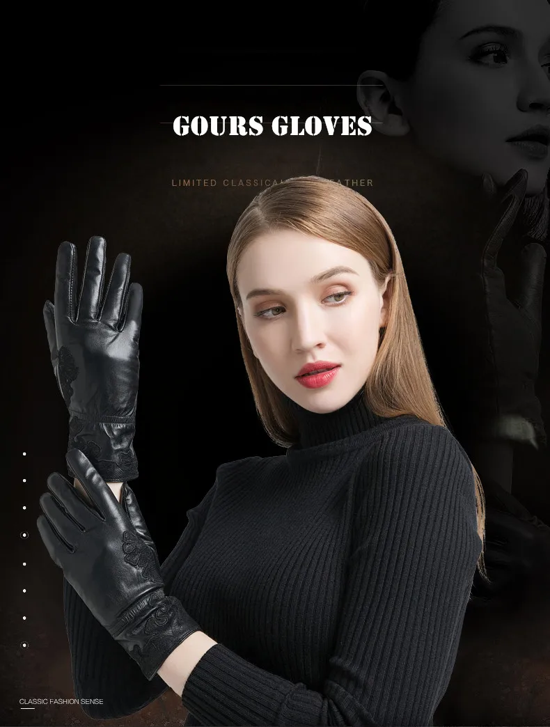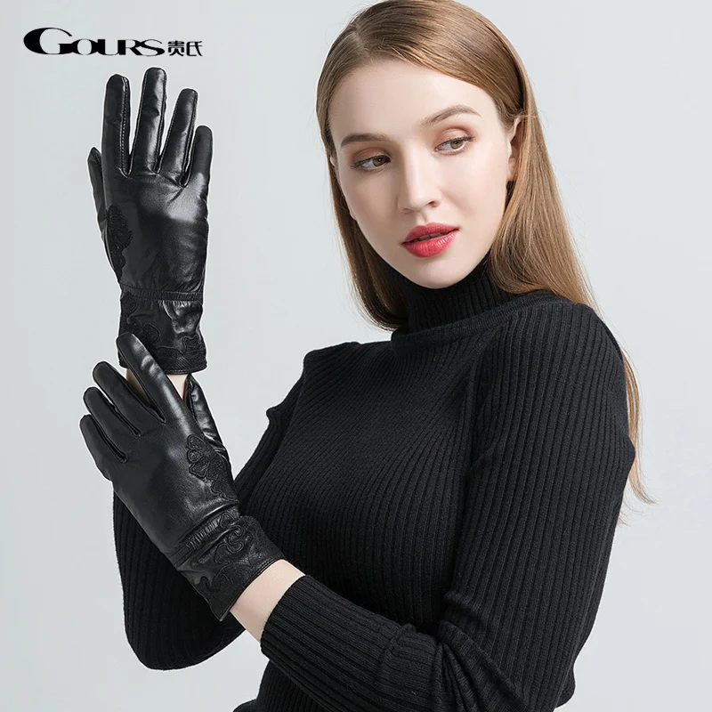 Женские перчатки с вышивкой Gours, черные перчатки из натуральной козьей кожи, с шерстяной подкладкой, GSL055, зима 2019