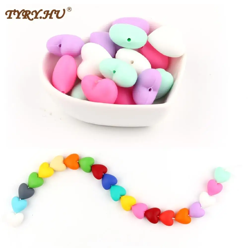 TYRY.HU 20 шт./лот силиконовые бусины в форме сердца Детские Прорезыватели Силиконовые Прорезыватели для зубов для ожерелья Силиконовые Прорезыватели для зубов