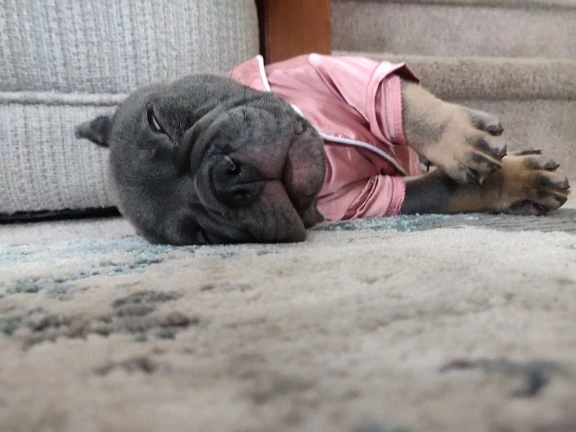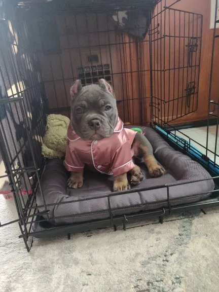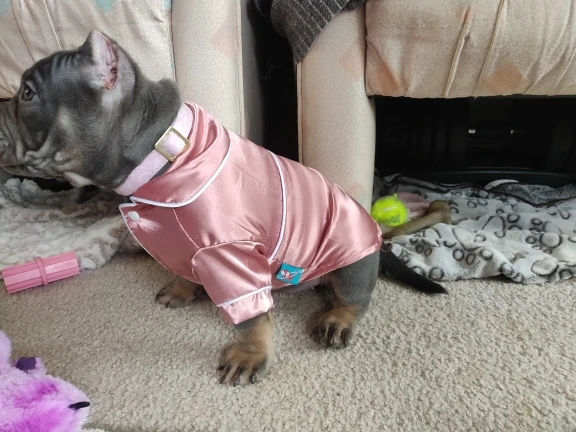 Лучшая собака шелковые пижамы я когда-либо SEEEN Мой MICRO BULLY весит 8, 5 фунтов-я заказал среднюю вещь, она скоро понадобится на размер больше, но абсолютно того стоит! (Возможно, вам придется отрезать излишки ниток изнутри, но это не повредит продукт, который они идеальны☺②