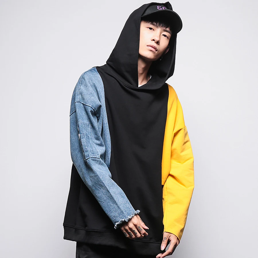 Винтажная Лоскутная Толстовка с капюшоном, Мужская цветная Толстовка Оверсайз, мужские толстовки в стиле хип-хоп, повседневный пуловер, Модный свитшот, мужской спортивный костюм 6H28