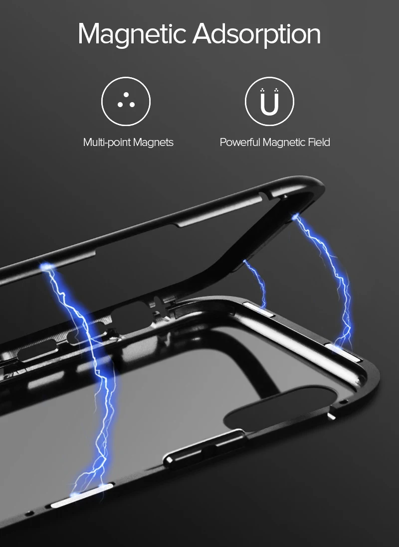 Магнитный поглощающий чехол для телефона GETIHU, магнитный металлический Прозрачный + чехол из закаленного стекла для iPhone 11 Pro X Xs Max 8 7 6 6S Plus