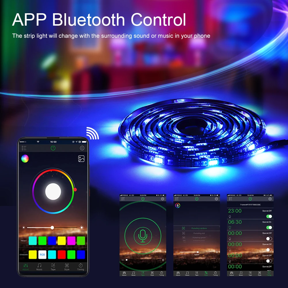 Светодиодная лента, 5 В, USB, RGB, Bluetooth, беспроводное умное уп...