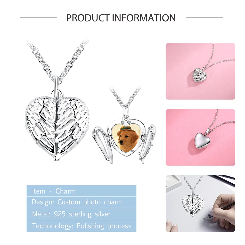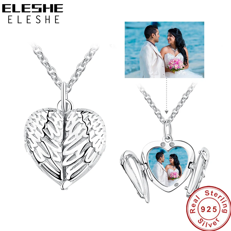 Ожерелье ELESHE из стерлингового серебра 925 пробы с подвеской в виде крыла ангела для женщин, длинная цепочка, ожерелье с индивидуальным дизайном по фото, ювелирное изделие в форме сердца