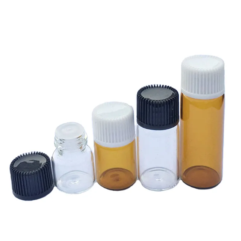 Флаконы для эфирных масел, 10 шт.лот, 1 мл, 2 мл, 3 мл, 5 мл, стеклянная бутылка с редуктором отверстия и крышкой, маленькие прозрачные флаконы для эфирных масел