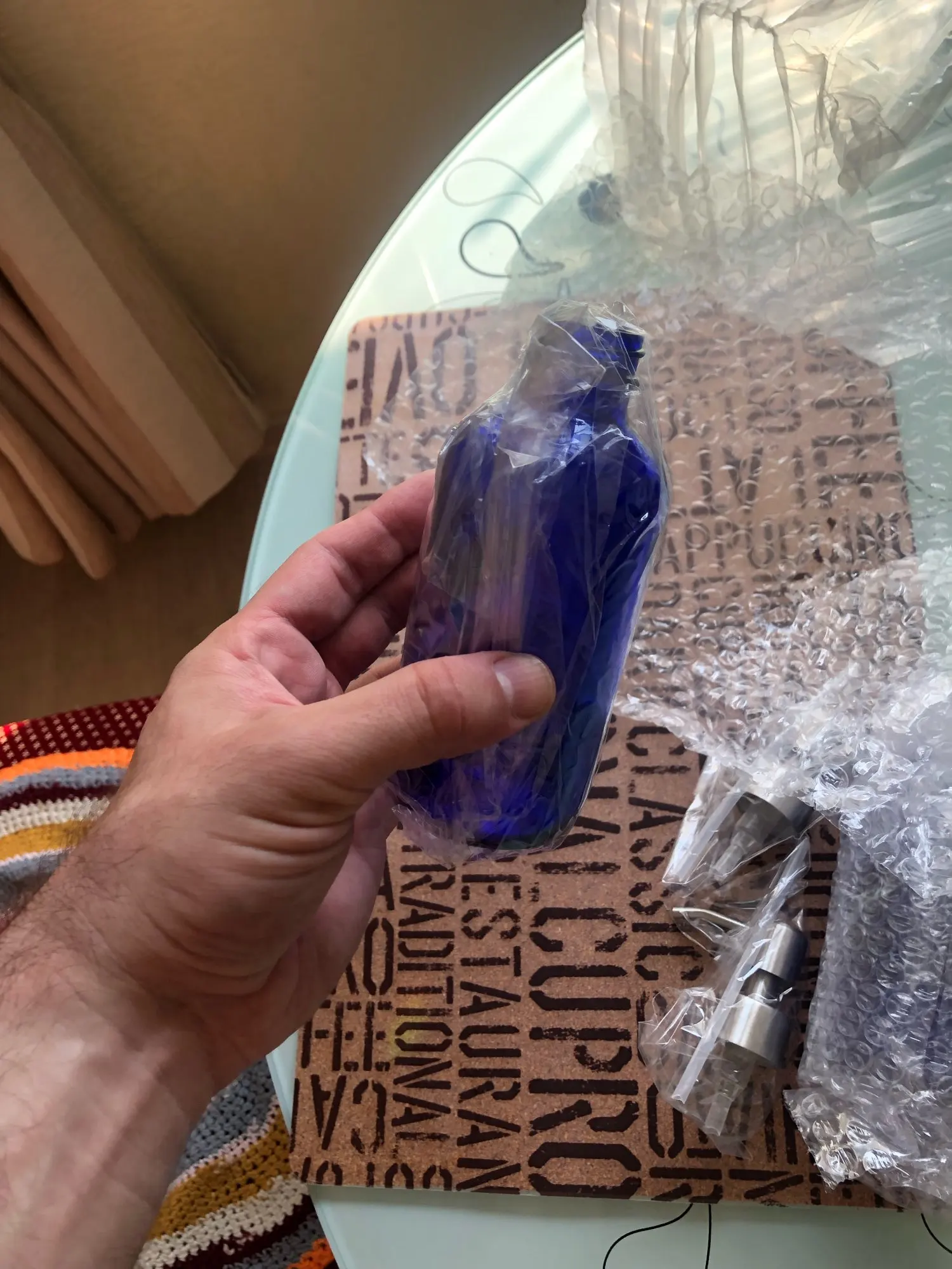 Прочное стекло может выдерживать аварии и многоразового использования, чтобы сэкономить деньги и помочь окружающей среде. Кобальтовый синий стеклянный контейнер защитит ваши домашние косметические продукты от УФ-повреждений.