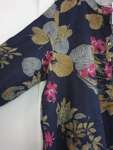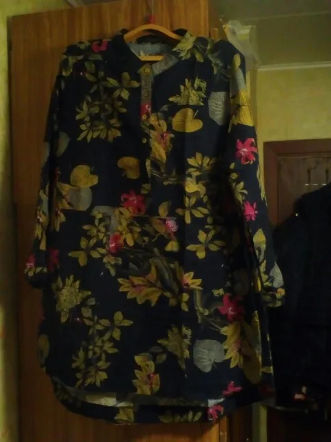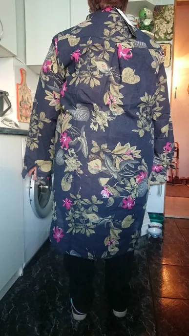 Эта блуза по качеству больше похожа на лен. По размеру на ОГ 122 и ОБ 123 она даже большевата, но, возможно, после стирки подсядет. Длинная, прикрывает булочки и ниже. Рукав полный. Под узкие брюки или леггенцы нормально будет. Для толстушек как я-рекомендую.