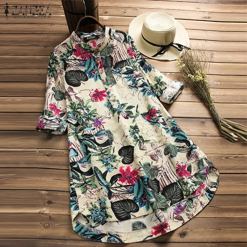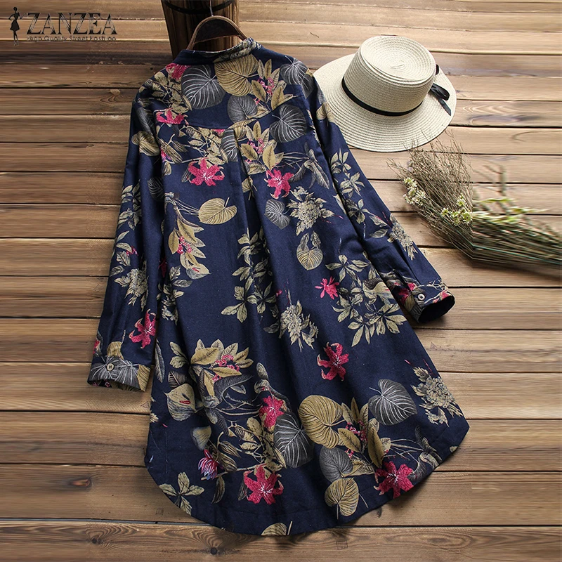 Женская блузка с цветочным принтом ZANZEA 2022, женские повседневные рубашки на пуговицах, винтажные Цветочные блузы, богемные топы, рубашка