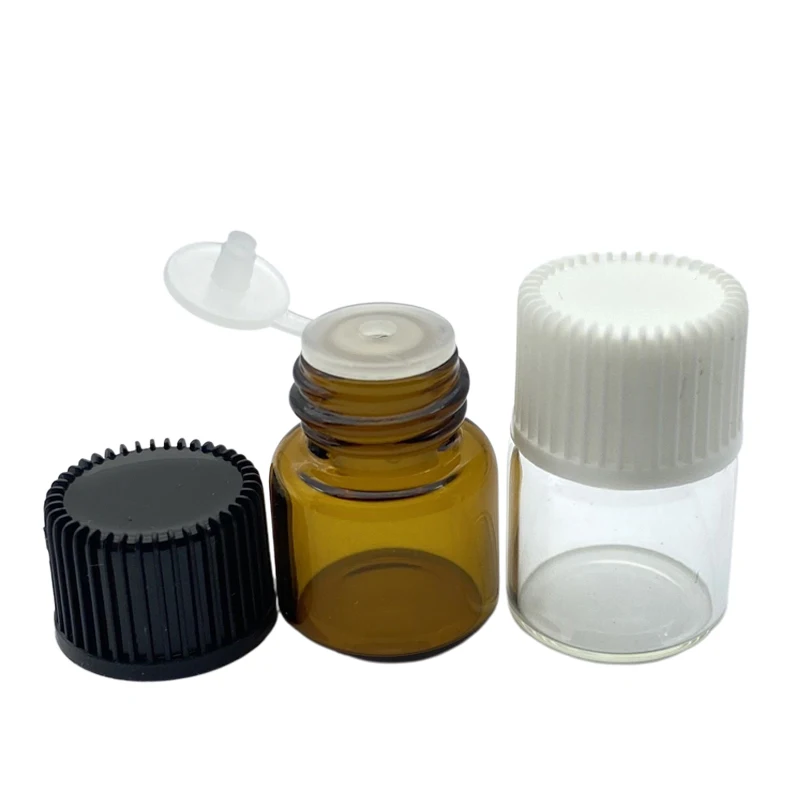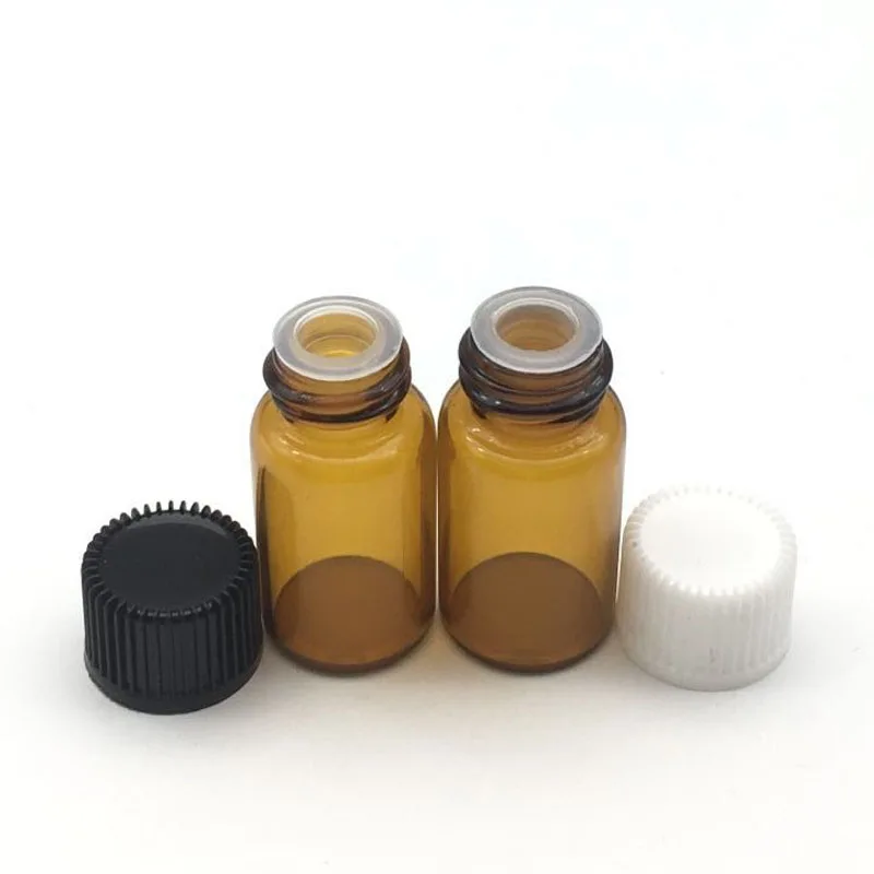 Флакон из янтарного стекла с редуктором отверстия и крышкой, 100 шт., 1 мл, 2 мл, 3 мл, 5 мл, пробник жидких духов, маленькие прозрачные флаконы для эфирных масел
