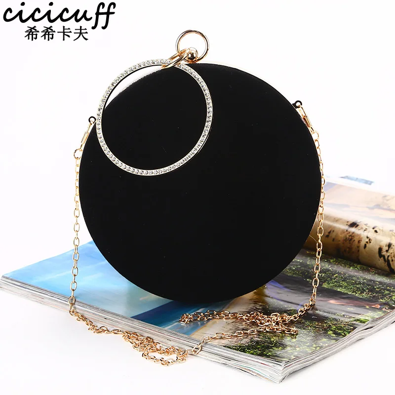 Новинка 2022, круглая вечерняя сумка-клатч ручной работы cicзаff круглой формы, женская сумка-мессенджер на плечо из мягкого бархата с цепочкой, классическая черная