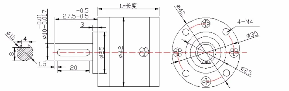 Планетарный редуктор размеры установки и контур :( выходной вал диаметром 10 мм)L = 38 мм