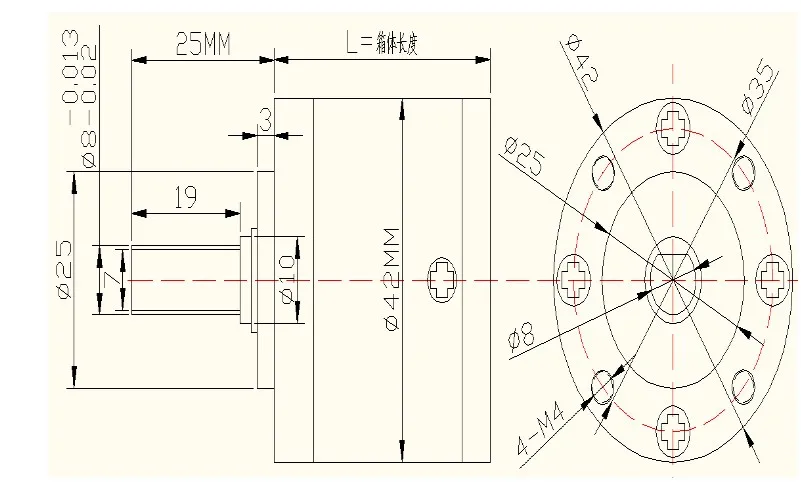 Размеры установки и контуры планетарного редуктора: (диаметр выходного вала 8 мм)L = 38 мм