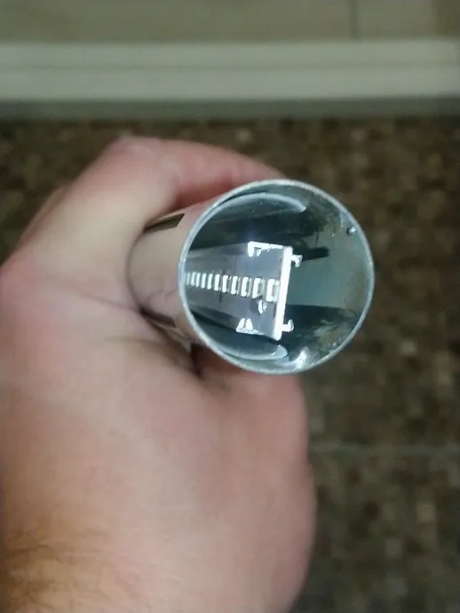 Внутри алюминиевая светодиодная лента, вставленная в алюминиевый профиль. Пришлось разобрать, потому что были плохо затянуты винты крепления световой трубки к каркасу. Заодно убрал небольшой зазор м/у лентой и профилем, прижав в нескольких местах по всей длине "клинышками" из сложенной в несколько раз алюминиевой фольги. Теплоотвод будет чуть лучше.