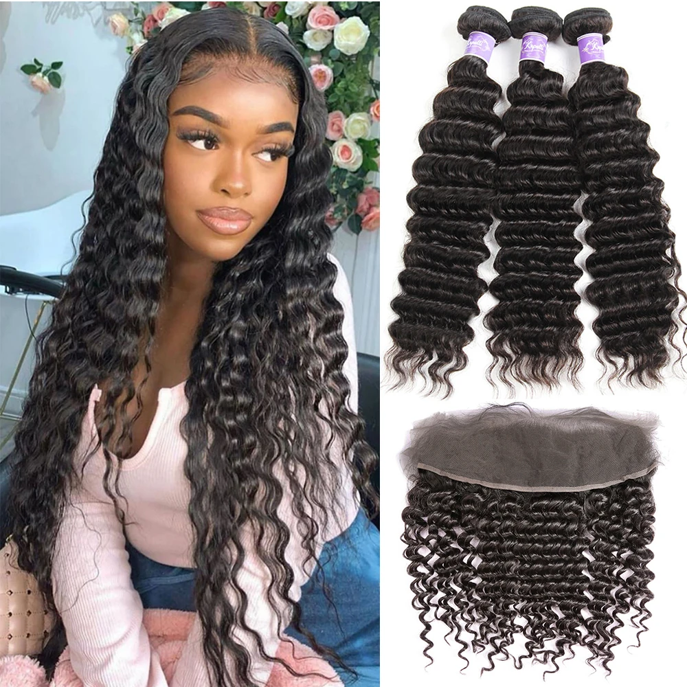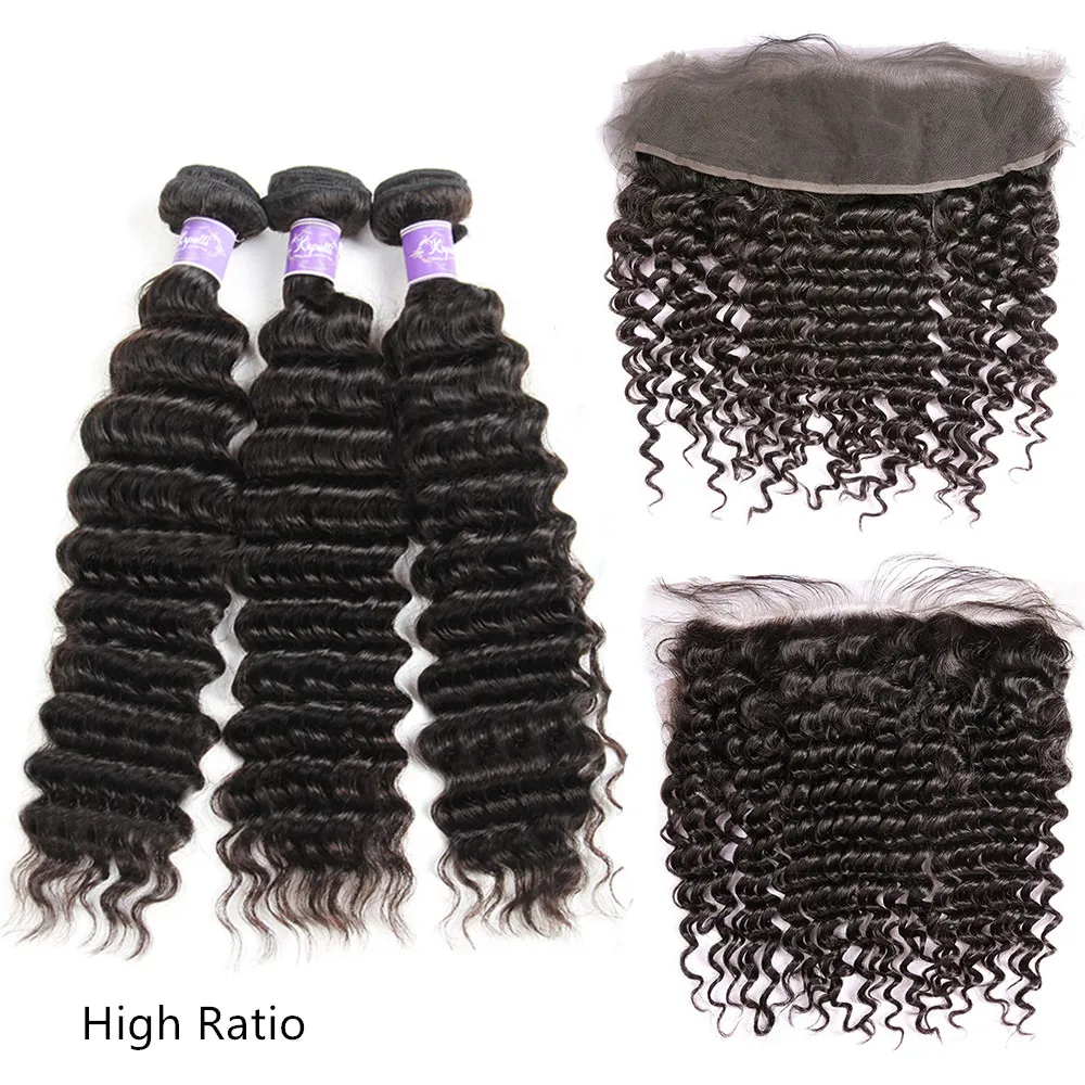 Волнистые человеческие волосы 34 пряди с фронтальной бразильской волнистой пряди с фронтальной застежкой 13x4 с детскими волосами Remy