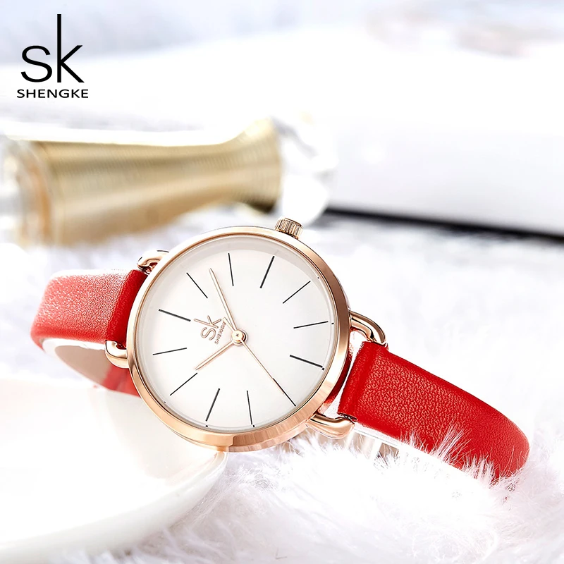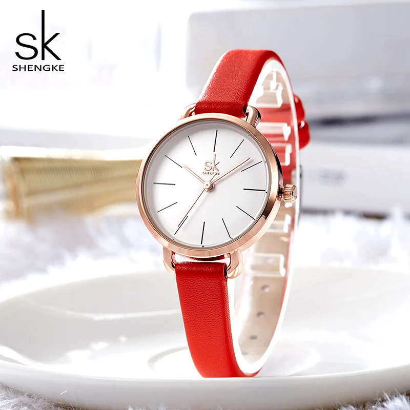 Shengke тонкий кожаный часы женские часы топ роскошные брендовые женские кварцевые часы SK Reloj Mujer 2021 для женщин, подарок ко дню рождения # K8021