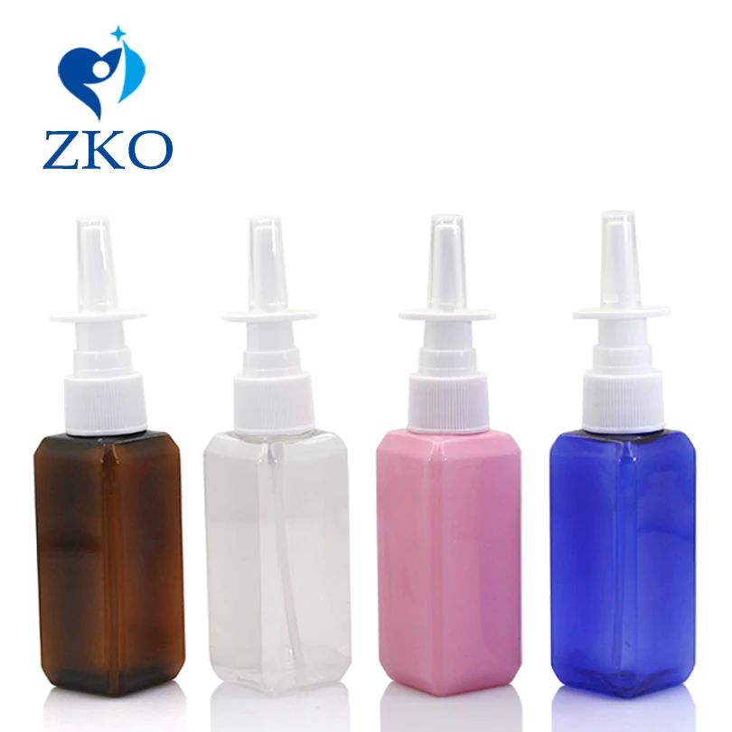 Бесплатная доставка, 1 шт., 50 мл, коричневый, синий, прозрачный, розовый, пластиковая Квадратная бутылка, распылитель, туман, носназальный Заправляемый спрей, бутылки