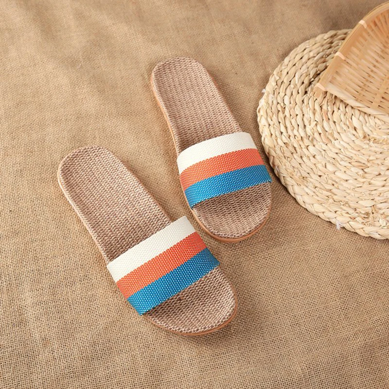 Тапочки домашние унисекс, из льна, на плоской подошве