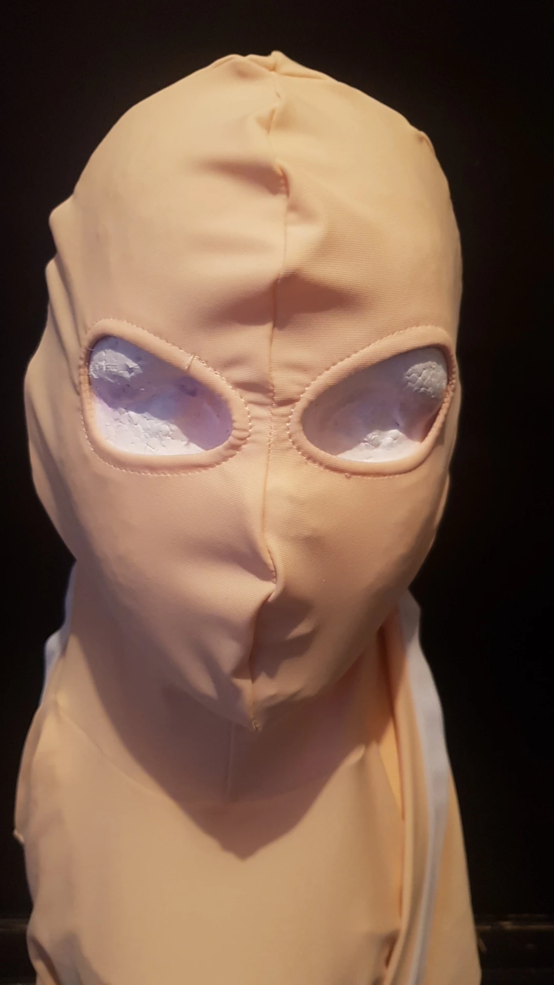 Прибыло с головой, руками и ногами. Очень эластичный! Идеально подходит для мышечного костюма
