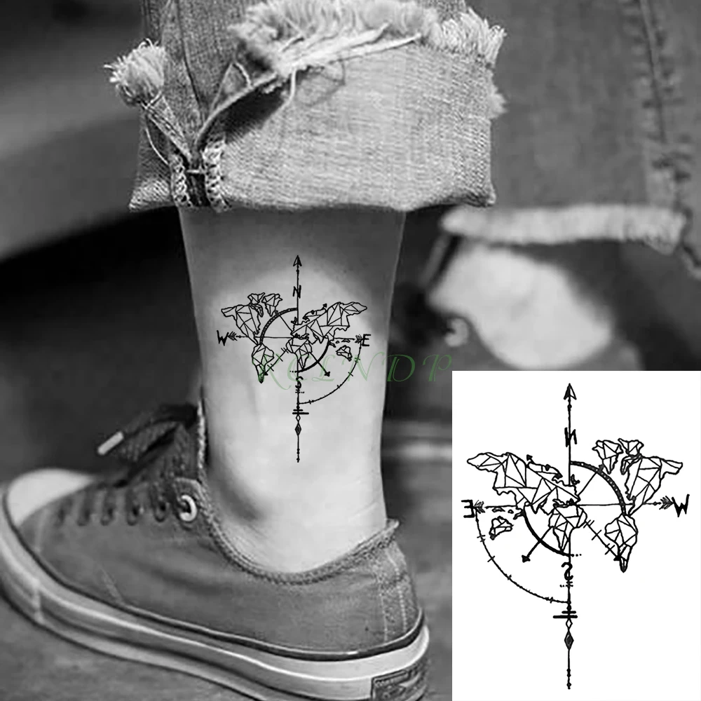 Тату-наклейка переводная Водонепроницаемая с компасом, флэш-тату, имитация тату на шею, запястье, ногу, руку, тату для боди-арта для мужчин и женщин