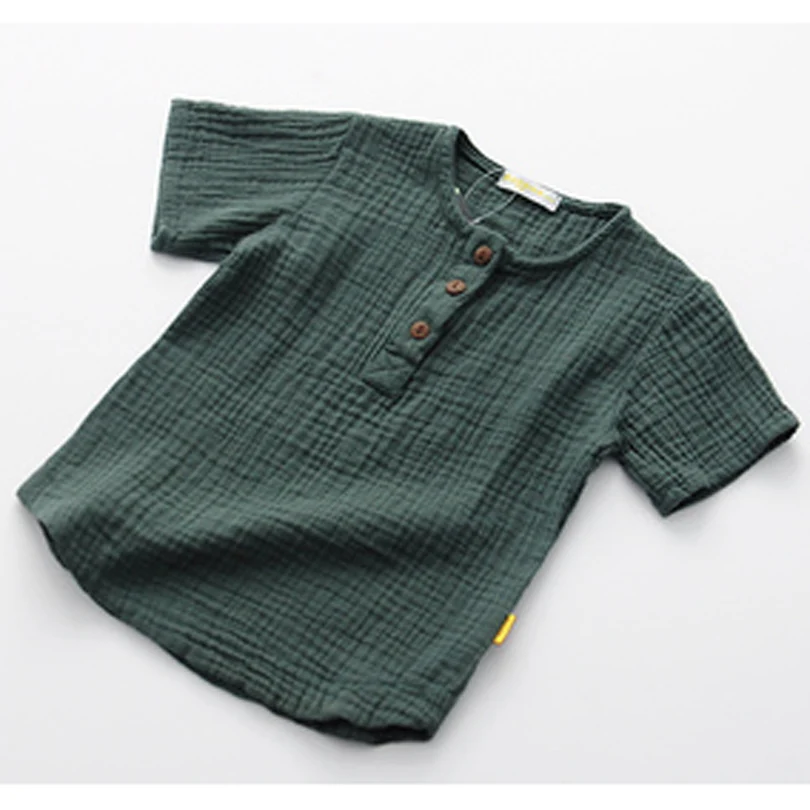 Футболка из От 3 до 7 лет льна и хлопка для маленьких мальчиков, летние футболки для девочек, удобные топы, футболки, детская одежда, детская рубашка на пуговицах