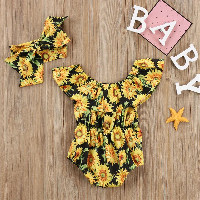 Комбинезон с коротким рукавом и повязкой на голову для новорожденных девочек, лето симпатичный боди