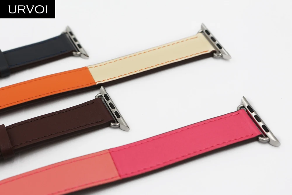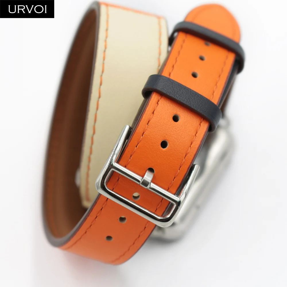 URVOI двойной тур-ремешок для apple watch series 7 6 5 4 SE 3 2 1 ремешок для iwatch ремень высокое качество мягкая натуральная кожа петля обертывания 38 42 мм