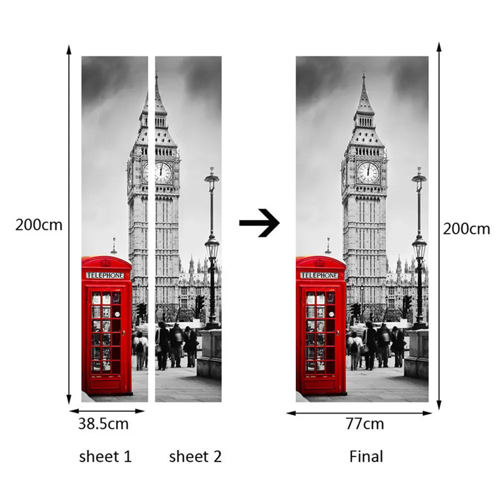 2 шт.компл. художественный декор для двери Big Ben, Креативные 3D наклейки для двери DIY, узор для стены, комнаты, дома, двери, Декор, аксессуары для украшения