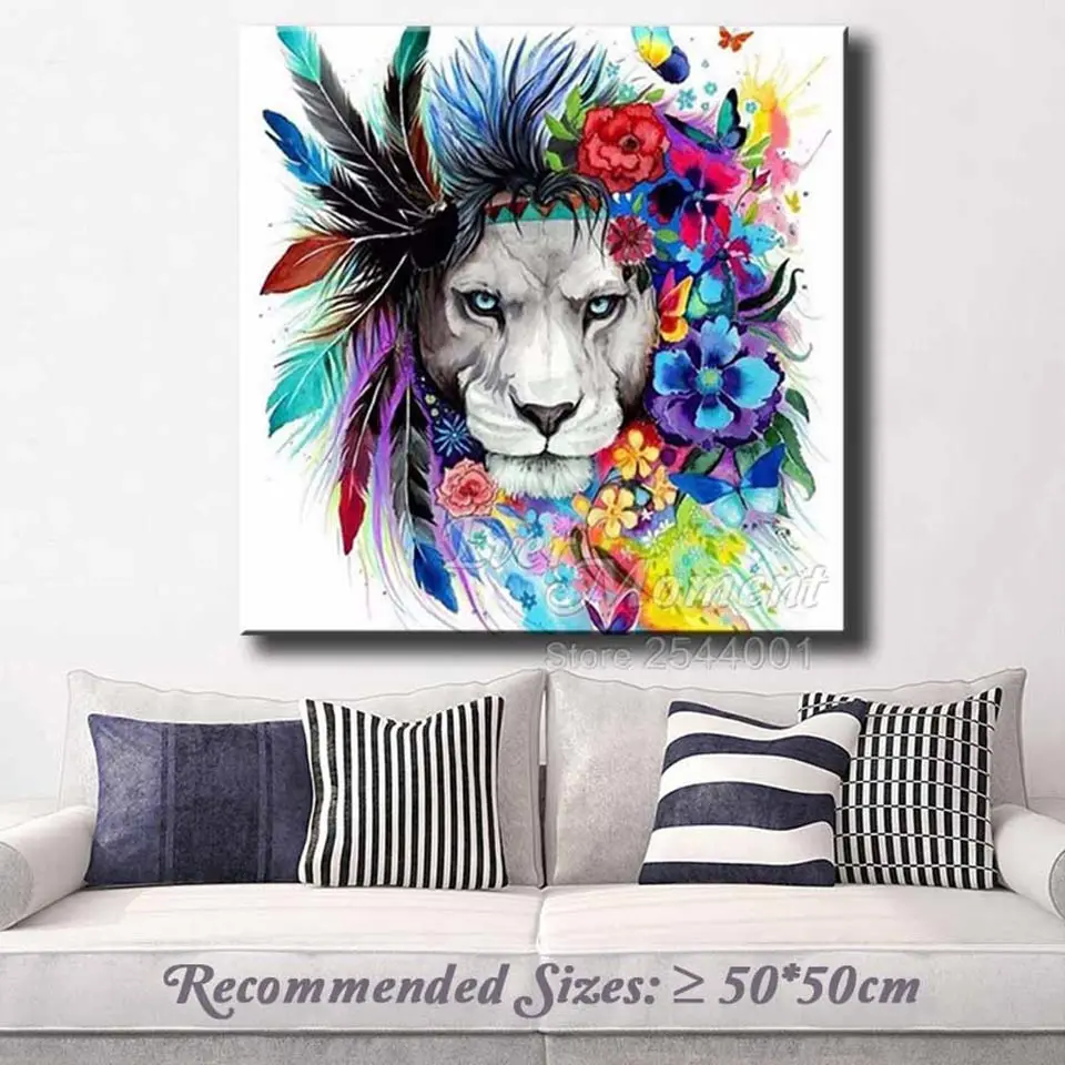 Ever Moment DIY Алмазная картина красивый красочный крутой Лев с пером и цветочной бабочкой Вышивка Животных ASF1003