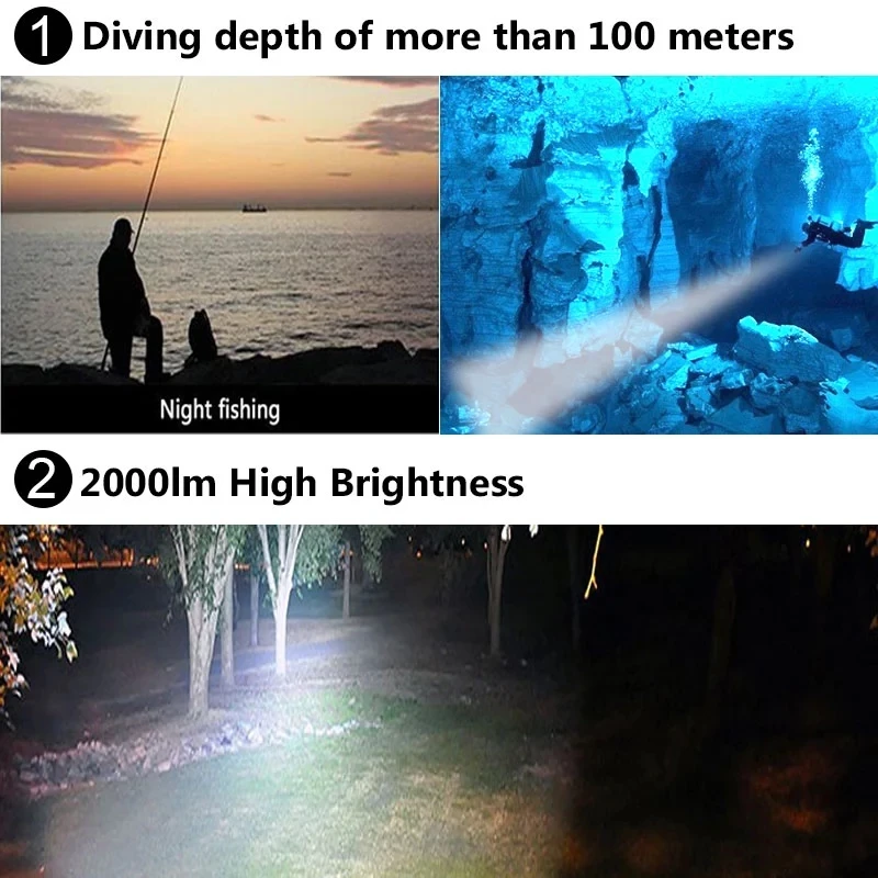 TMWT Дайвинг Подводная охота Подводные 100 м Torch Light Ультра-яркий XML T6 или CREE светодиодный фонарик холодный белый желтый УФ