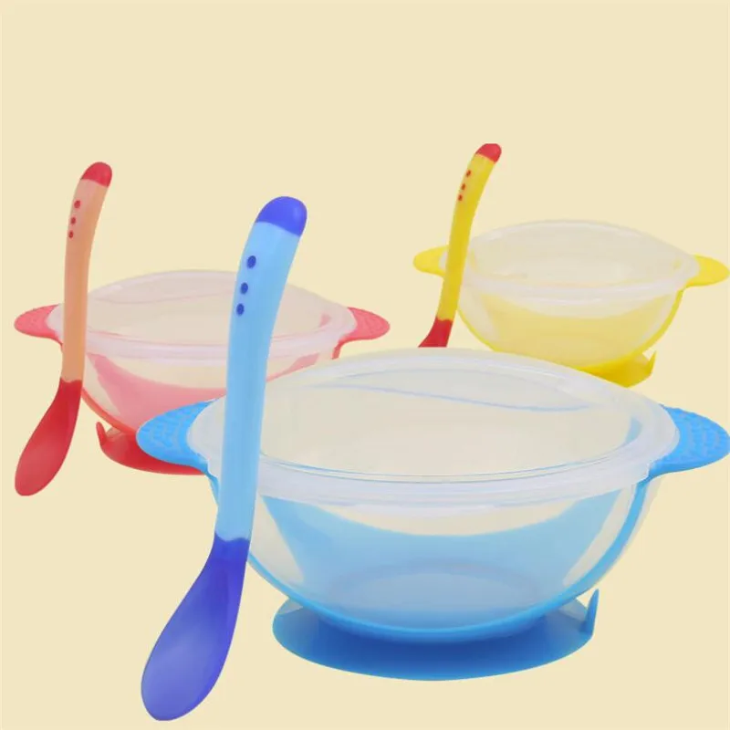 Детская посуда, столовая посуда, чаша на присоске с датчиком температуры, ложка, детское питание, миски для кормления ребенка, блюда