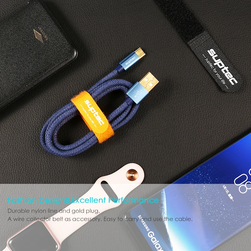 Кабель зарядный SUPTEC в джинсовой оплетке USB Type-C для Samsung Galaxy S9 S8 Note 8 Plus r Xiaomi Oneplus 6